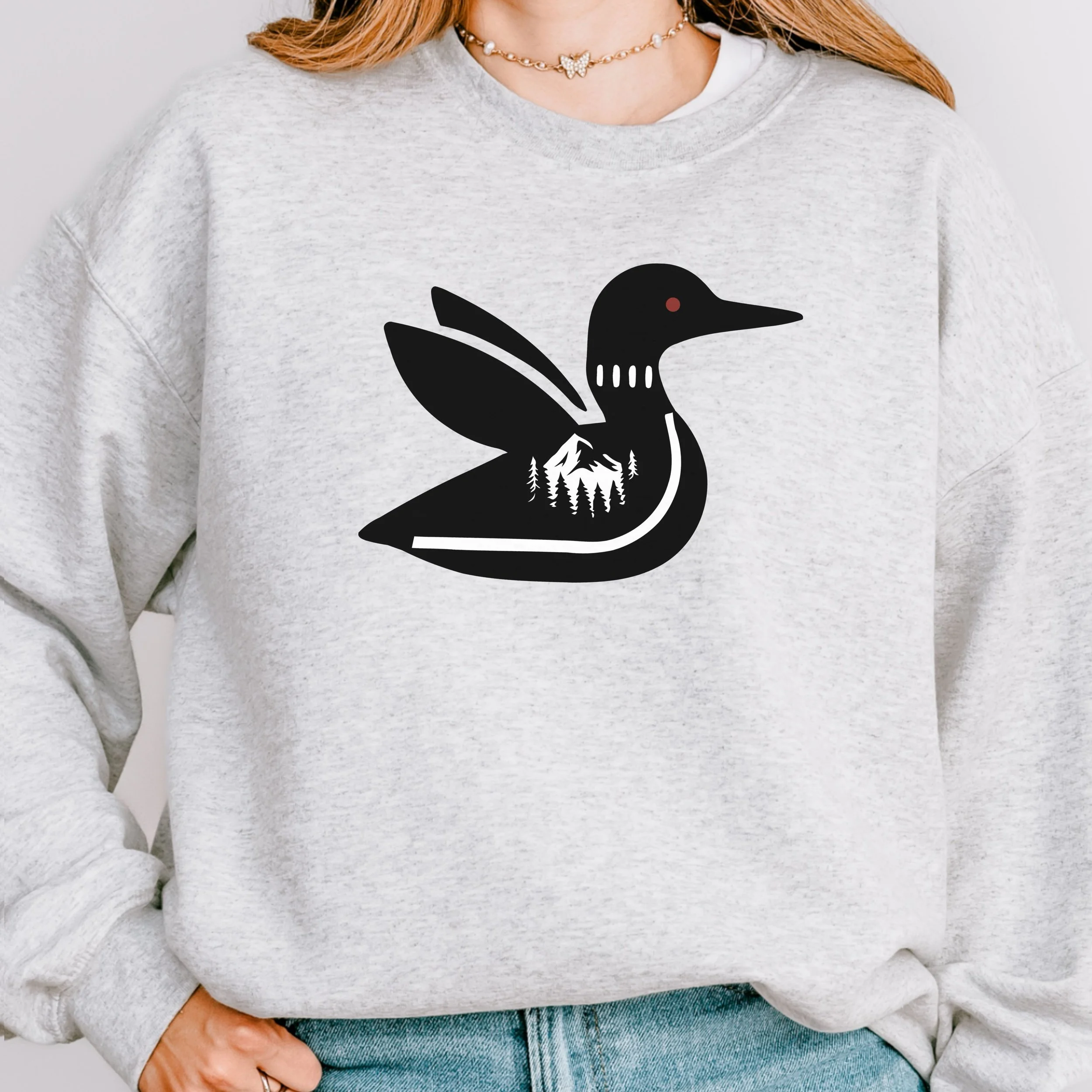 This classic crewneck features our signature loon design—bold, minimal, and inspired by quiet days up north. It’s the kind of piece that feels easy the second you put it on and works with just about everything you already own.