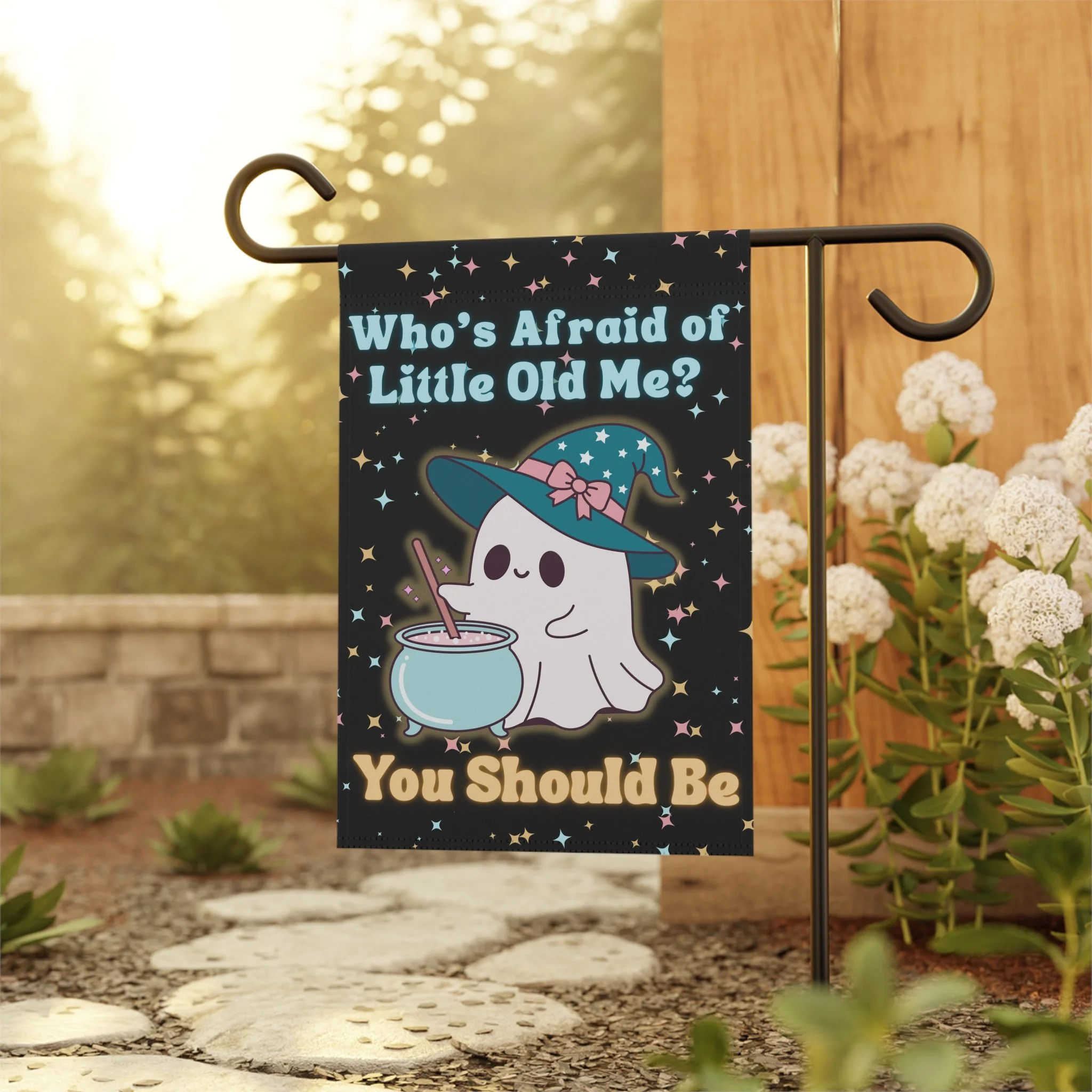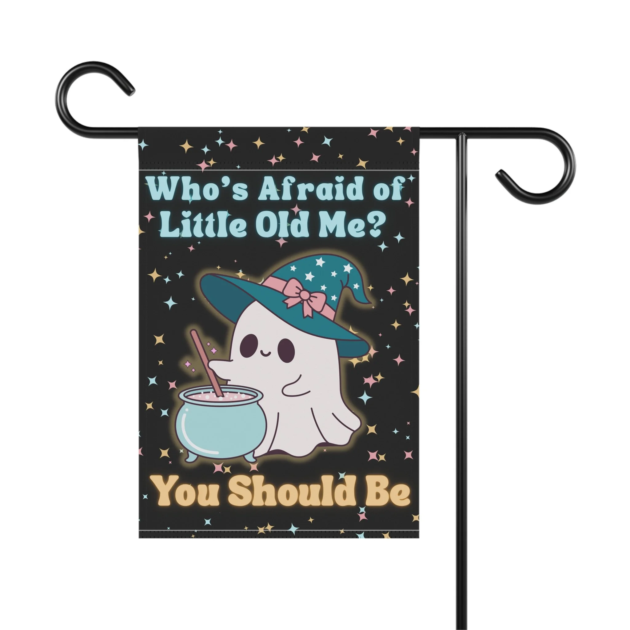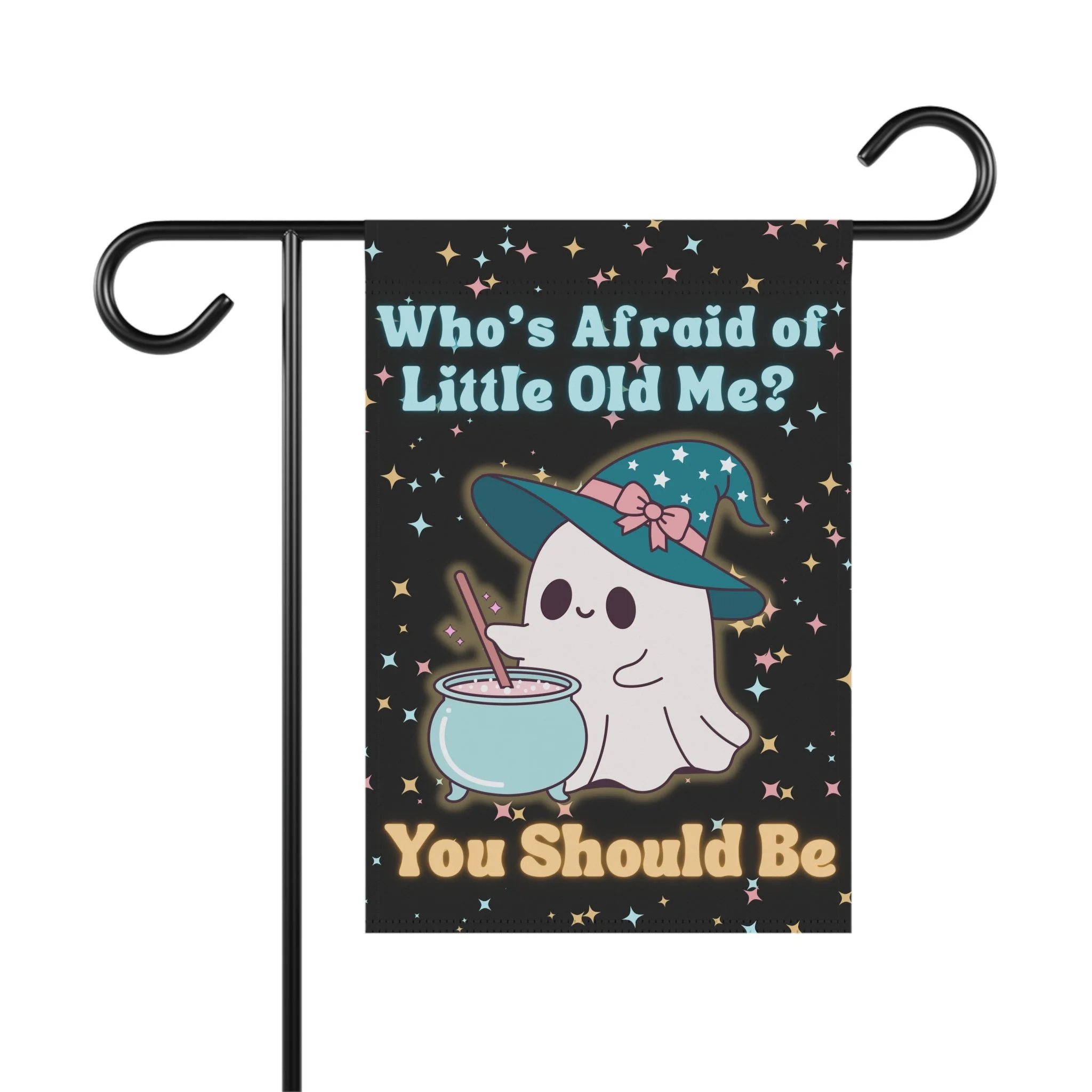 Who’s Afraid of Little Old Me Witchy Ghost Garden Flag